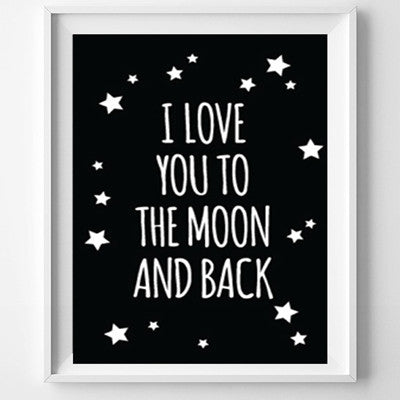 I Love You To The Moon and Back Printable Nursery Quotes Oil Painting
