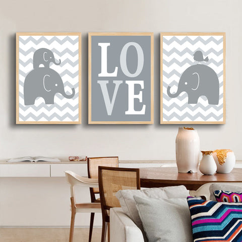 Cartoon Elephants Love Canvas Painting Nursery